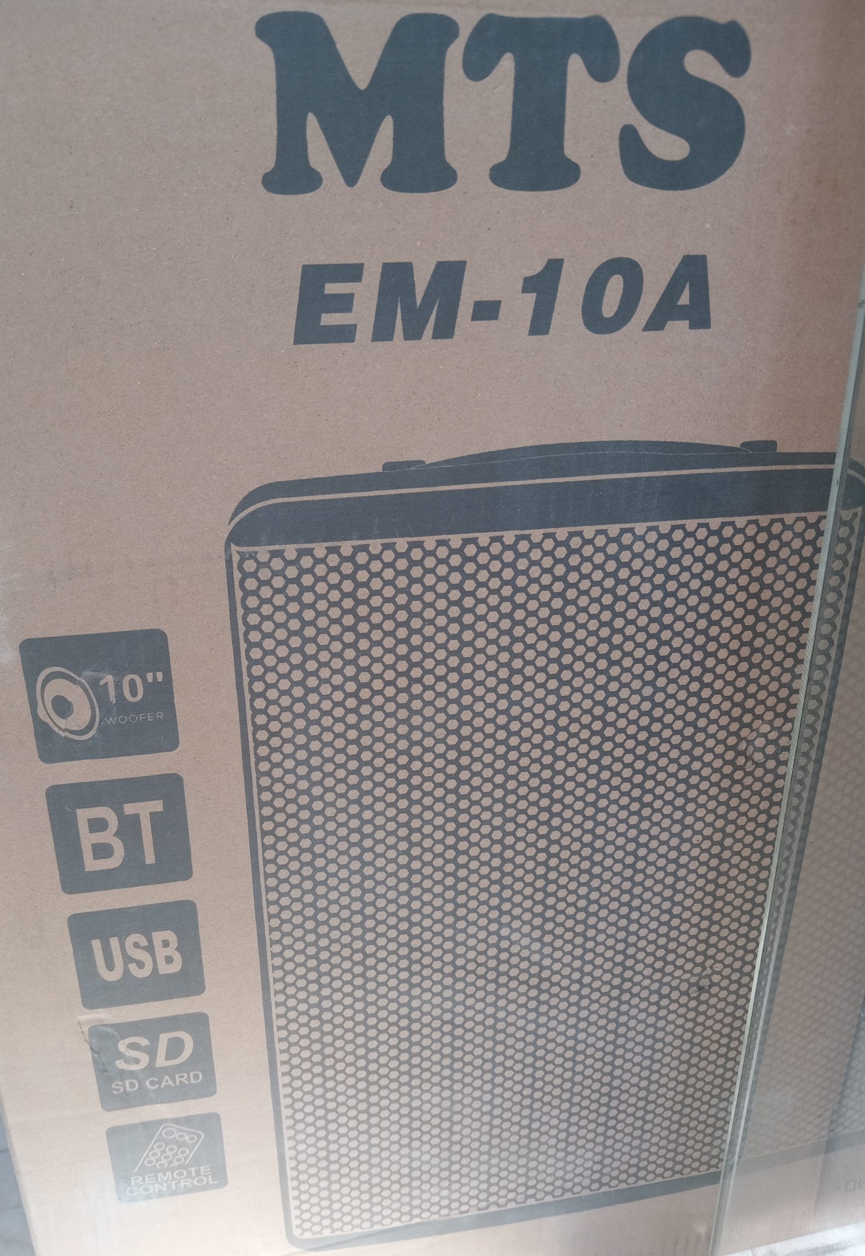 باند اکتیو 10 اینچ شارژی ام تی اس مدل MTS EM10 یک باند دو طرفه با ووفر 10 اینچی و یک توییتر برای پخش صدا میباشد که تحت عنوان اکو شارژی نیز شناخته شده است. از قابلیتهای این باند میتوان به پورت USB، قابلیت استفاده از SD کارت و بلوتوث اشاره کرد. همچنین به این باند دارای 2 ورودی میکروفون و لاین میباشد.(فاقد میکروفون بیسیم ولی پر قدرت تر از مدل میکروفون دار و شارژی میباشد)