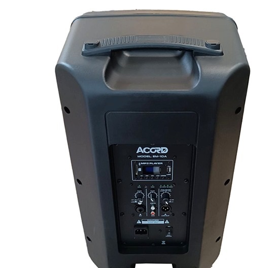 اسپیکر اکتیو 10 اینچ ACORD مدل EM_10 (قدیم mts) یک اسپیکرجمع و جور البته از نوع 2way است که صدایی با کیفیت و قدرتمند در اختیار کاربر قرار میدهد .متریال بسیار با کیفیت این اسپیکر دارای یک ووفر 10 اینچ با و یک تیوتر سایز1/5 اینچی همراه با یک آمپلی فایر قدرتمند و حرفه ای با تفکیک صدای بسیار بالا و پرتاب بیس بسیار با کیفیت میباشد.پنل آمپلی فایر این محصول از نوع کلاس D بسیار پر قدرت میباشد و از قابلیت های این باند میتوان به اتصال ورودی میکروفن و پنل MP3 پلیر ساپورت فلش مموری بلوتوث قابلیت رکورد و… اشاره کرد.