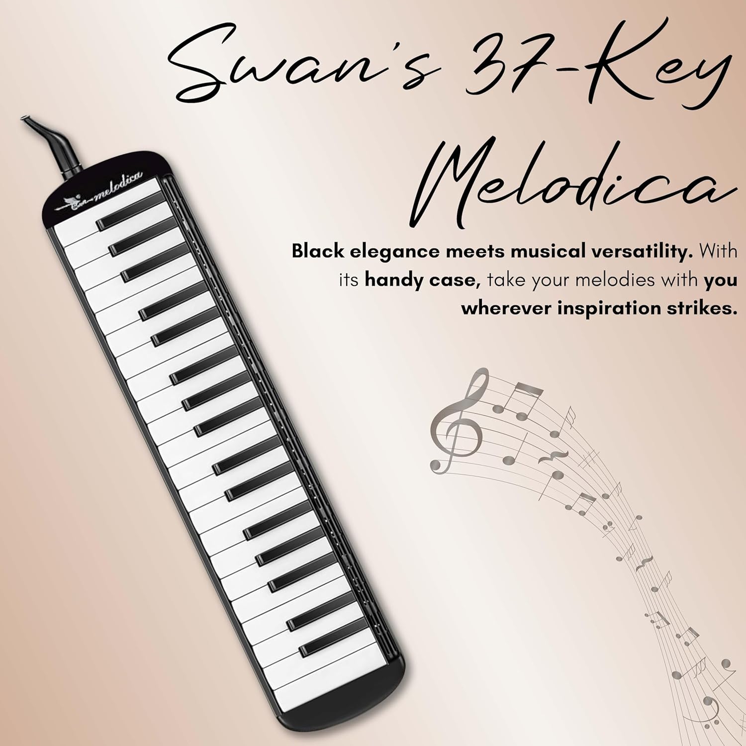 کاملا خوش صدا و مناسب برای مبتدی تاحرفه ای میباشد ودارای صدای بلند وکوک دقیق است.جنس بدنه بسیار بادوام و کلیدها کاملا نرم و روان و در موقع اجرابه هیچ عنوان گیر نمی کند . ومورد استقبال همه نوازندگان بوده است.این ساز همچنین مورد تایید تمامی اساتید موسیقی است. ملودیکا سوان 37 کلید SWAN 37KEY شامل یک صفحه کلید موسیقی در بالا است و توسط دمیدن هوا از طریق دهانهٔ ساز که در کنار آن قرار گرفته نواخته میشود. فشار یکی از کلیدهای صفحه کلید باعث بازشدن مسیر هوای سوراخ متناظر با کلید شده و هوای ورودی باعث به ارتعاش درآمدن زبانه و تولید صدا میشود. حجم صدای این ساز معمولاً دو تا سه اکتاو است. ملودیکا 3 اکتاو کوچک، سبک و قابل حمل میباشد و در آموزش به خصوص در آسیا مشهور است.