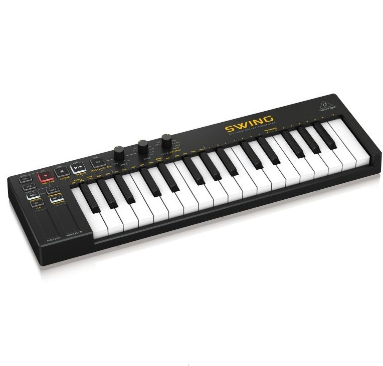 میدی کنترلر Behringer SWING یک میدی کنترلر کیبورد USB با 32 کلید و Sequencing پلی فونیک 64 مرحله ای، Chord و حالت های Arpeggiator است.